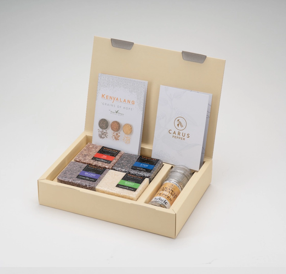 We offer several unique gifting options featuring the brands we carry — from Sarawak Heirloom Rice to healthy banana chips to premium grade Sarawak Pepper.